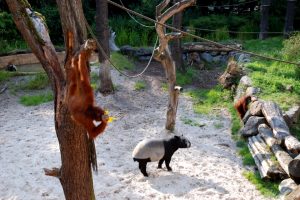 Das ist tatsächlich gelungener Artenschutz – aber wie baut man denn gelungene, funktionierende Seil-Brücken für Orang-Utans, die diese auch gern benutzen, aber andererseits auch nicht kaputt machen können? Zum Glück herrscht da bei den Haltern von Orang-Utans jahrzehntelange Erfahrung. Man weiß aus Zoos wie man solche Seile konstruieren muss, dass sie einerseits der Neugier der Tiere nicht zum Opfer fallen, aber auch andererseits gut funktionieren – ein Know-How, das man ohne die Zoos nicht hätte. In der Wildbahn darf man sich ja keine Fehlversuche leisten, denn schlechte Erfahrungen (wie etwa ein Abstürzen, Unwohlsein o.ä.) würden wilde Orang-Utans demotivieren solche Seile zu benutzen und deshalb muss quasi alles von Anfang an stimmen.