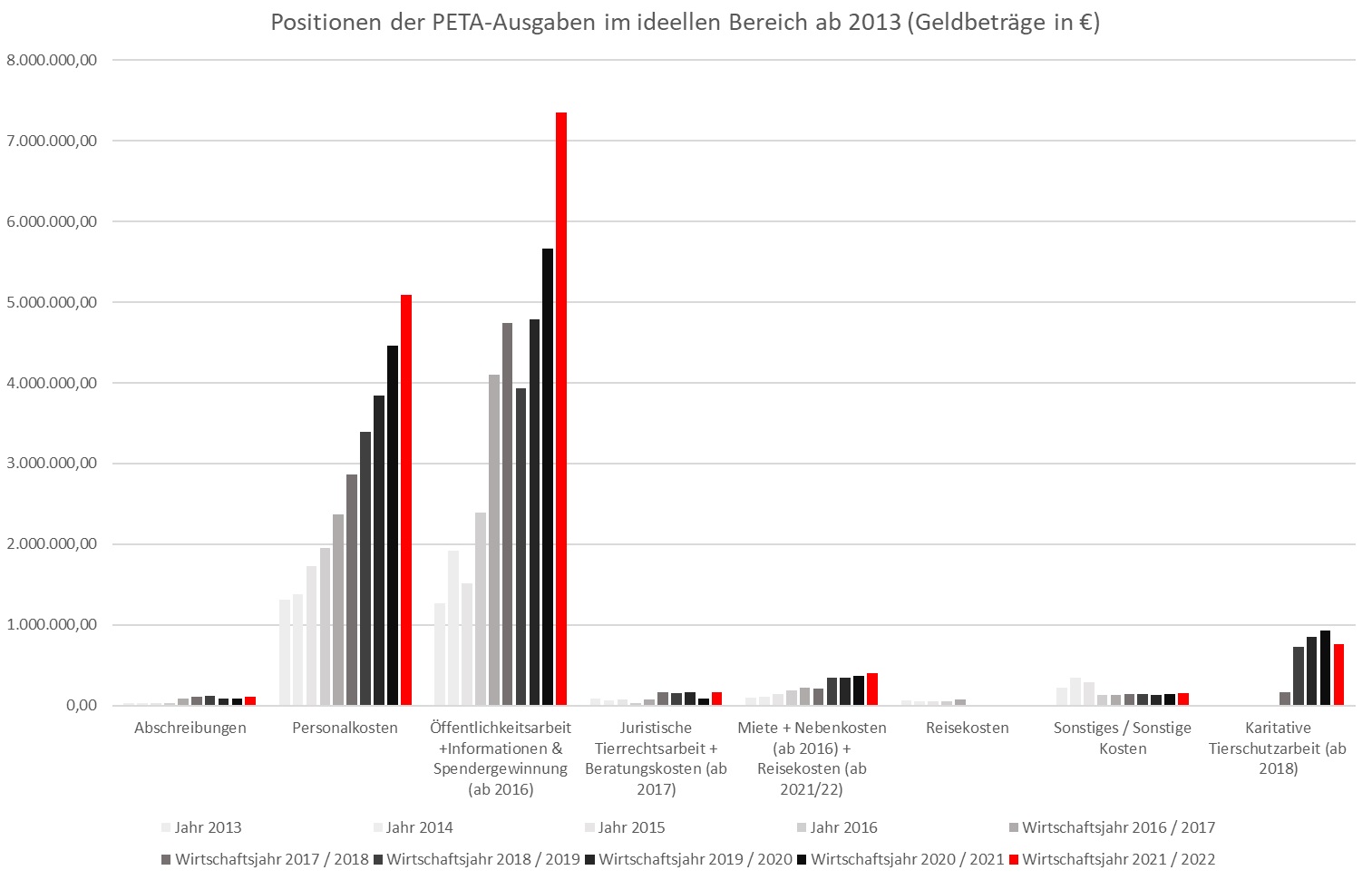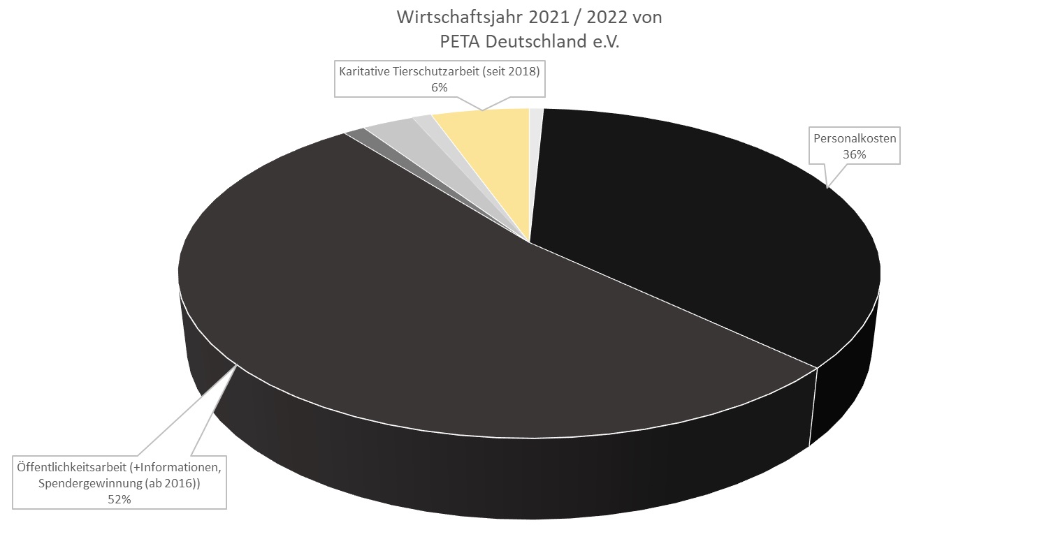 Mit Vereinsarbeit hat das nicht wirklich was zu tun. Der Verein PETA Deutschland hat übrigens ohnehin nur sieben Mitglieder, aber 118 fest angestellte Mitarbeiter. Normale Vereinsarbeit ist vor allem ehrenamtliche Arbeit von Mitgliedern. So sieht man aber wie unter dem Namen PETA Deutschland eigentlich ein Unternehmen firmiert, das es durch Intransparenz und mit dem Feigenblatt Tierschutz schafft, sich steuerliche Vorteile einzusacken und jährlich trotzdem rund 30 Millionen Euro zu bewegen.