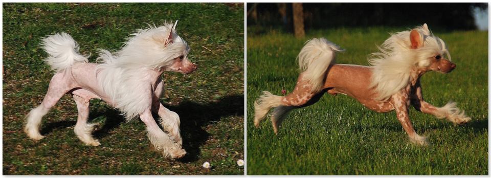 Wenn man an die Nackthunde denkt, wird oft vergessen, dass es zwei Varietäten gibt: den haarlosen Nackthund und den behaarten Nackthund. Das klingt widersinnig, ist aber Realität. Sie kommen sogar gleichzeitig in einem Wurf vor. Wichtig zu wissen ist, dass kein Nackthund komplett ohne Haare ist, auch nicht die haarlosen Nackthunde. Die Vibrissen, das sind wichtige, funktionstragende Haare am Kopf, sind grundsätzlich bei allen sogenannten Nackthunden vorhanden.