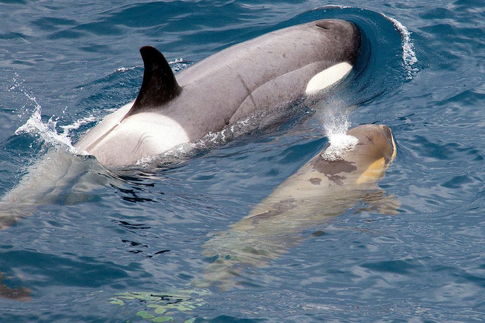Wilde Orcas im Bereich South Georgia – man sieht gut Hautunreinheiten | Foto: Christopher P. Michel, Lizenz: CC BY 2.0